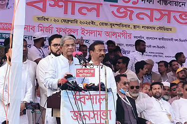 নির্বাচনের মধ্য দিয়ে দেশকে স্থিতিশীল করতে হবে উল্লেখ করে জনসভায় মির্জা ফখরুল ইসলাম আলমগীর বলেন, ‘আপনারা জাতিকে অনিশ্চয়তার মধ্যে না ফেলে দ্রুত নির্বাচনের তারিখ ঘোষণা করুন। নির্বাচনী রোডম্যাপ দিন। অস্থিতিশীল বাংলাদেশকে একটি নির্বাচনের মধ্য দিয়ে স্থিতিশীল করতে হবে। আপনারা দেশের মানুষের দিকে তাকান। দেশে আর নৈরাজ্য সৃষ্টি করবেন না। এগুলো ভালো ফল বয়ে আনবে না। যত দ্রুত সম্ভব আপনারা জাতীয় নির্বাচন দিন।’