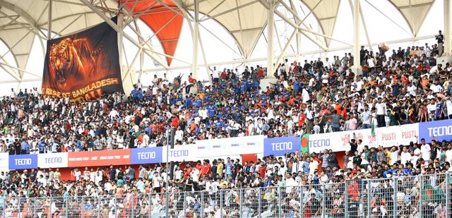 স্টেডিয়াম–সংলগ্ন দৈনিক বাংলা মোড়ে পৌঁছতেই চোখে পড়ল মানুষের লম্বা লাইন। বেশির ভাগের পরনেই বাংলাদেশ জাতীয় ফুটবল দলের সাদা রঙের নতুন হোম জার্সি। স্টেডিয়ামমুখী জনতার স্রোত এগিয়ে চলেছে ঢাকা জাতীয় স্টেডিয়ামের দিকে।
