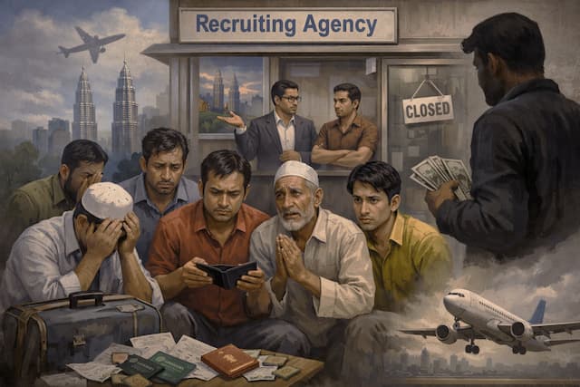 মালয়েশিয়ায় পাঠানোর প্রতিশ্রুতি দিয়ে টাকা নেওয়ার পর সেখানে না পাঠানোর অভিযোগ উঠেছে দুই রিক্রুটিং এজেন্সির বিরুদ্ধে। জনশক্তি কর্মসংস্থান ও প্রশিক্ষণ ব্যুরোতে (বিএমইটি) ওই দুই এজেন্সির বিরুদ্ধে প্রতারণার অভিযোগ দিয়েছেন ১০ ভুক্তভোগী। গত ১১ অক্টোবর অভিযোগ জমা দেন তারা।