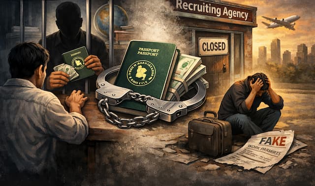 বিদেশ যেতে ইচ্ছুক এক কর্মীর টাকা ও পাসপোর্ট আটকে রাখার অভিযোগ উঠেছে অপরাজিতা ওভারসিজ নামে একটি রিক্রুটিং এজেন্সির বিরুদ্ধে। গত ১৬ ফেব্রুয়ারি প্রবাসী কল্যাণ ও বৈদেশিক কর্মসংস্থান মন্ত্রণালয়ে ওই এজেন্সির বিরুদ্ধে লিখিত অভিযোগ জমা দিয়েছেন হিফজুর রহমান নামে এক ভুক্তভোগী।