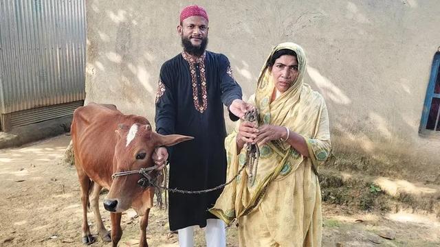 গাজীপুর জেলার শ্রীপুরে ঝাড়ু বিক্রেতা জাহাম্মদ আলী মুনশিকে একটি গরু উপহার দিয়েছেন সৌদিপ্রবাসী এনামুল হক মোল্লা। গরু পেয়ে খুব খুশি ভুক্তভোগী ঝাড়ু বিক্রেতা জাহাম্মদ আলীর স্ত্রী জামেনা খাতুন।