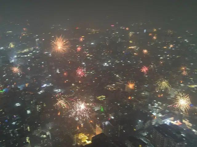 ঘড়িতে রাত ১২টা বাজতেই রঙিন হয়ে ওঠে ঢাকার আকাশ। বিধিনিষেধের মধ্যেই পটকা ও আতশবাজির শব্দে একাকার হয় পুরো ঢাকা মহানগরী। ঢাকার বাসাবাড়ির ছাদে ছাদে ছোট–বড় সবাই মিলে নতুন বছরকে বরণ করে নিতে উল্লাসে মেতে ওঠেন। নানা আয়োজনে ২০২৫ সালকে বরণ করে নেন মানুষ।