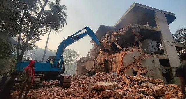 রাজধানী ঢাকার ধানমন্ডির ৩২ নম্বরে বঙ্গবন্ধু শেখ মুজিবুর রহমানের বাড়িটি (বঙ্গবন্ধু ভবন) এক্সকেভেটর (ভেকু) দিয়ে গুঁড়িয়ে দেওয়া হচ্ছে। বুধবার (৫ ফেব্রুয়ারি) রাত ৮টার আগে থেকে একদল বিক্ষুব্ধ জনতা ঐতিহাসিক এই বাড়িতে ঢুকে পড়ে। এরপর গভীর রাত পর্যন্ত ভাঙচুর চালানো হয় বাড়িটিতে। এক পর্যায়ে আনা হয় একটি এক্সকেভেটর। ভাঙার কাজ আজ বৃহস্পতিবার সকাল পর্যন্ত চলছে।