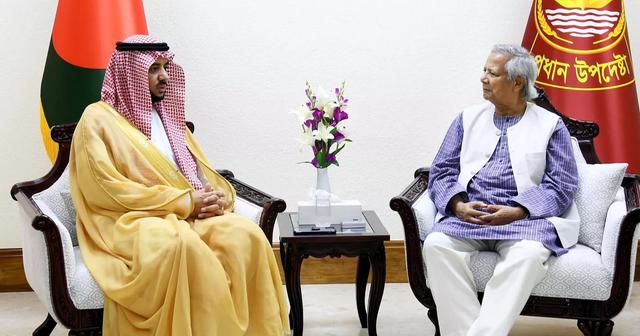সৌদি আরবকে বাংলাদেশে আরও বেশি বিনিয়োগের পাশাপাশি জ্বালানি ও অর্থনৈতিক সহযোগিতা জোরদারের আহ্বান জানিয়েছেন প্রধান উপদেষ্টা অধ্যাপক মুহাম্মদ ইউনূস।