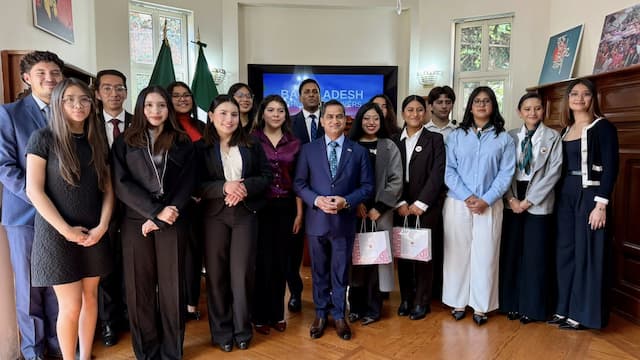 মেক্সিকোর বাংলাদেশ দূতাবাসে লাতিন আমেরিকার শীর্ষস্থানীয় ন্যাশনাল অটোনোমাস ইউনিভার্সিটি অব মেক্সিকোর (ইউনাম) আন্তর্জাতিক সম্পর্ক বিভাগের শিক্ষার্থীদের অংশগ্রহণে অনুষ্ঠিত হয়েছে এক ইন্টার্যাকটিভ সেশন।