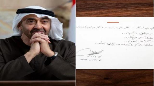 সংযুক্ত আরব আমিরাতের ৫৩তম জাতীয় দিবসে নাগরিক ও প্রবাসীদের হাতে লিখে ধন্যবাদ জানালেন দেশটির প্রেসিডেন্ট শেখ মোহাম্মদ বিন জায়েদ আল-নাহিয়ান। আজ সোমবার সামাজিক যোগাযোগমাধ্যম এক্সে তিনি হাতে লেখা একটি বার্তা পোস্ট করে এ ধন্যবাদ জানান।