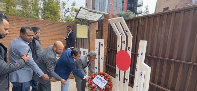 পরে রাষ্ট্রদূত ও কর্মকর্তা-কর্মচারীরা দূতাবাসে স্থাপিত অস্থায়ী শহীদ মিনারে পুস্পস্তবক অর্পণের মাধ্যমে ভাষা আন্দোলনে আত্মোৎসর্গকারী শহীদদের প্রতি গভীর শ্রদ্ধা নিবেদন করেন। এরপর আলোচনা অনুষ্ঠান শুরু হয়।